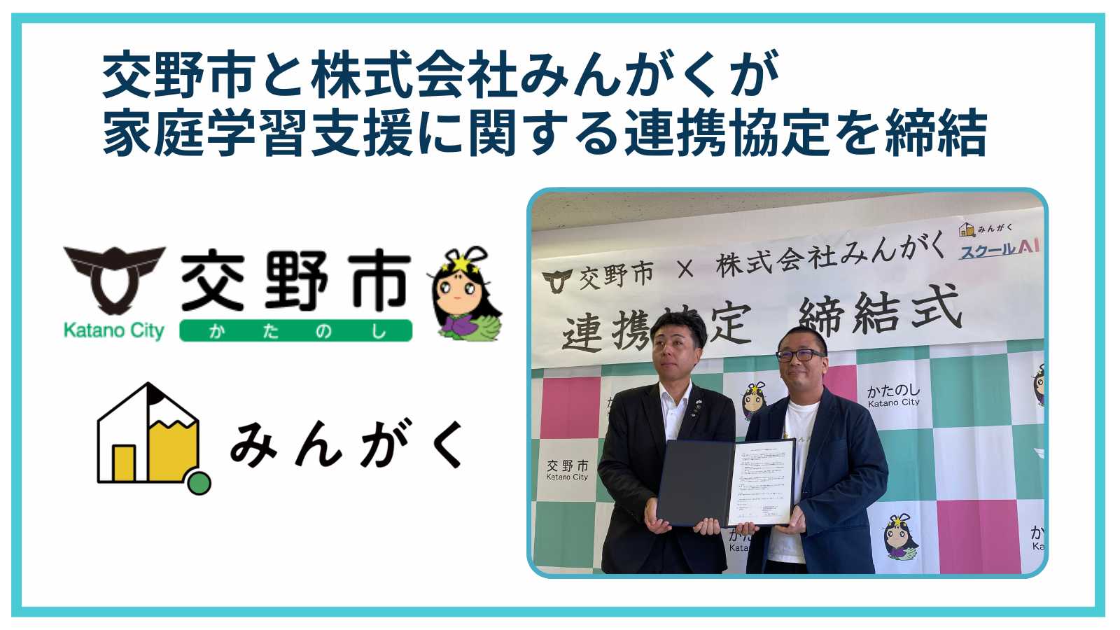 このたび株式会社みんがくは、交野市と「家庭学習支援に関する連携協定」を締結しました。